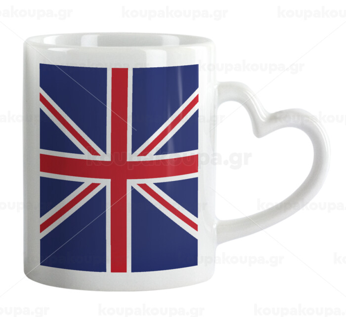 Σημαία Αγγλίας UK, Κούπα καρδιά χερούλι λευκή, κεραμική, 330ml