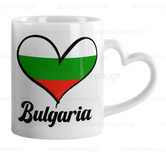 Bulgaria flag, Κούπα καρδιά χερούλι λευκή, κεραμική, 330ml