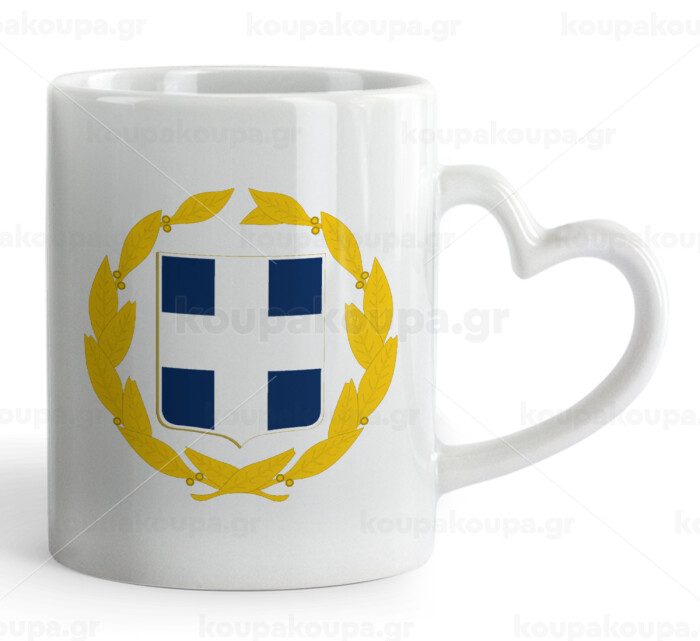 Hellas Εθνόσημο, Κούπα καρδιά χερούλι λευκή, κεραμική, 330ml