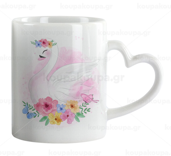 Λευκός κύκνος, Κούπα καρδιά χερούλι λευκή, κεραμική, 330ml