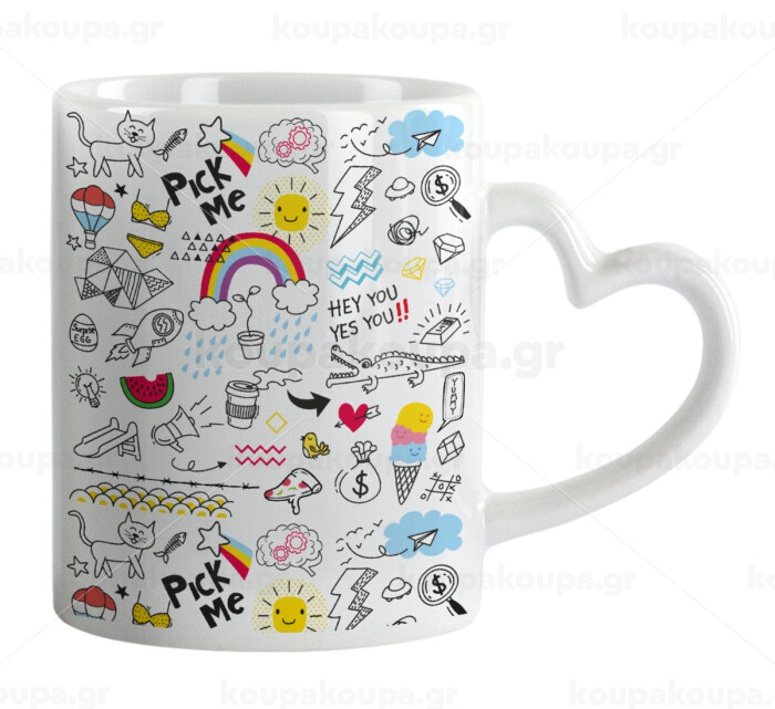 Doodle kids, Κούπα καρδιά χερούλι λευκή, κεραμική, 330ml