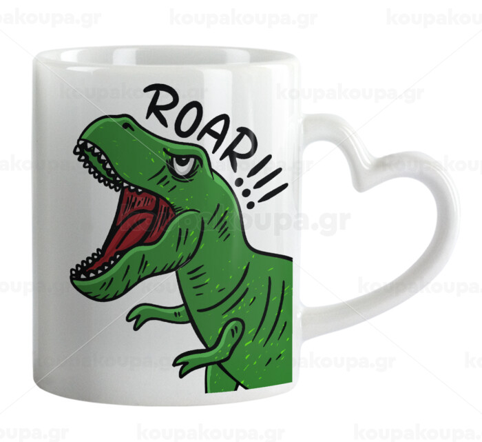 Dyno roar!!!, Κούπα καρδιά χερούλι λευκή, κεραμική, 330ml