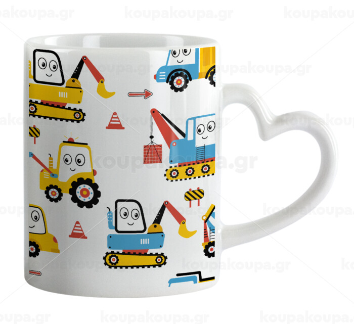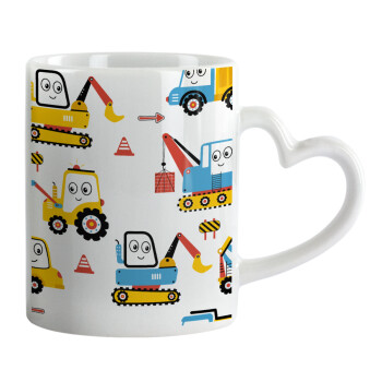 Hand drawing building truck, Κούπα καρδιά χερούλι λευκή, κεραμική, 330ml