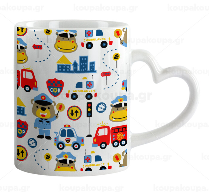 Rescue team cartoon, Κούπα καρδιά χερούλι λευκή, κεραμική, 330ml