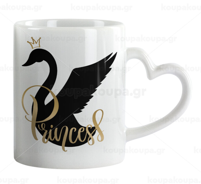 Swan Princess, Κούπα καρδιά χερούλι λευκή, κεραμική, 330ml