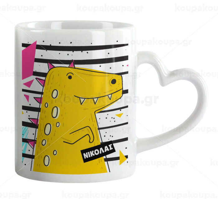 t-rex , Κούπα καρδιά χερούλι λευκή, κεραμική, 330ml