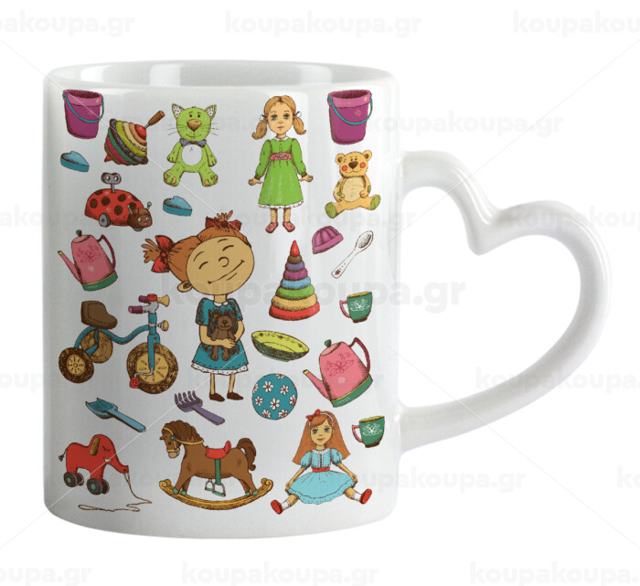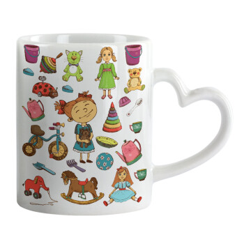 Toys Girl, Κούπα καρδιά χερούλι λευκή, κεραμική, 330ml