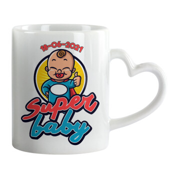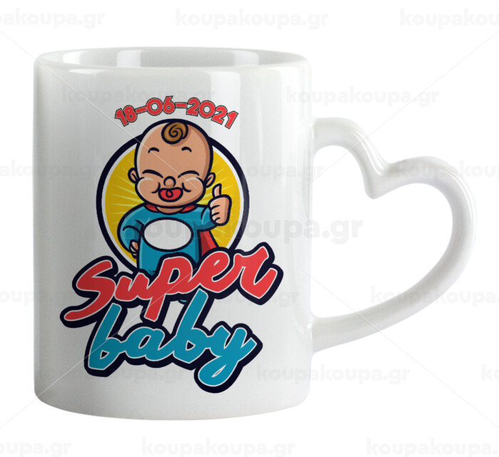 Super baby., Κούπα καρδιά χερούλι λευκή, κεραμική, 330ml