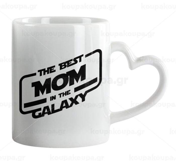 The Best MOM in the Galaxy, Κούπα καρδιά χερούλι λευκή, κεραμική, 330ml