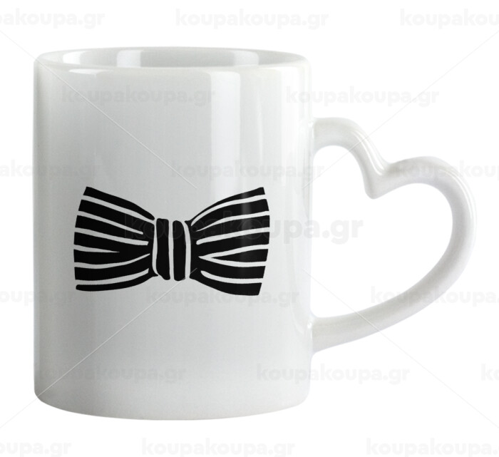 Bow tie, Κούπα καρδιά χερούλι λευκή, κεραμική, 330ml