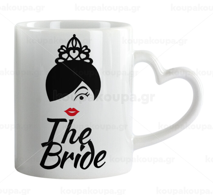 The Bride red kiss, Κούπα καρδιά χερούλι λευκή, κεραμική, 330ml