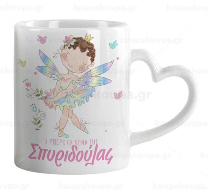 Η νονά μου, Νεράϊδα, Κούπα καρδιά χερούλι λευκή, κεραμική, 330ml