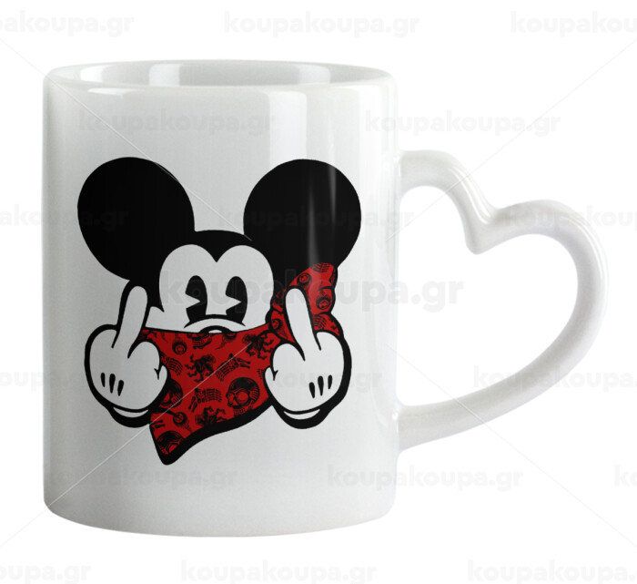 Mickey the fingers, Κούπα καρδιά χερούλι λευκή, κεραμική, 330ml