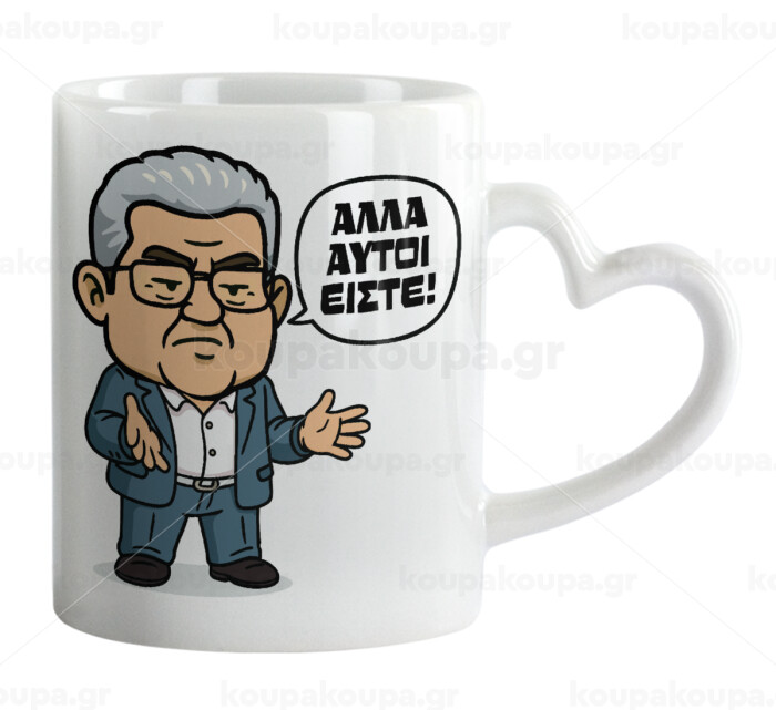 Κουτσούμπας, "Αλλά αυτοί είστε!", Κούπα καρδιά χερούλι λευκή, κεραμική, 330ml