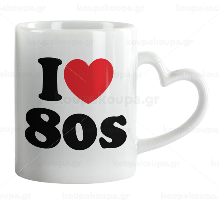 I Love 80s, Κούπα καρδιά χερούλι λευκή, κεραμική, 330ml