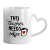 Τhis teacher needs coffee, Κούπα καρδιά χερούλι λευκή, κεραμική, 330ml