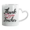 Thank you teacher, Κούπα καρδιά χερούλι λευκή, κεραμική, 330ml