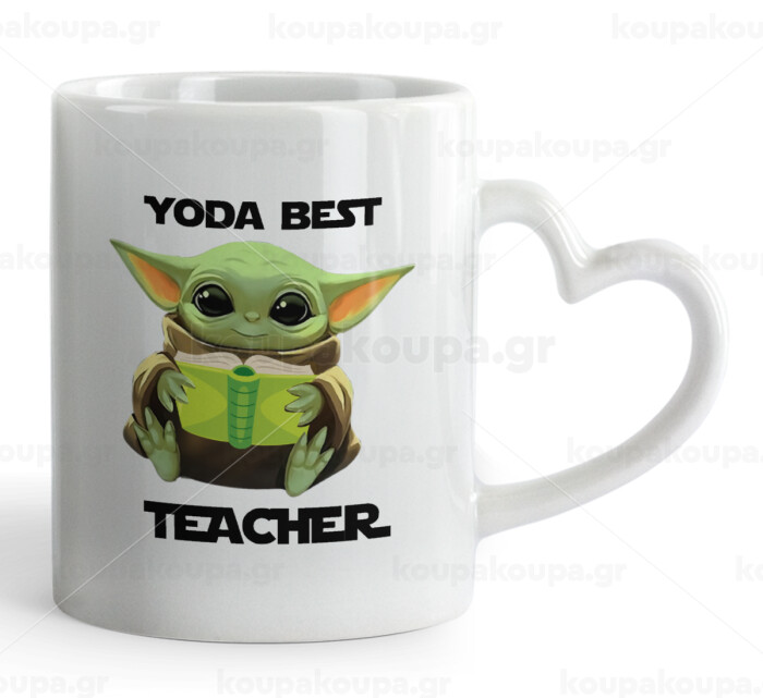 Yoda Best Teacher, Κούπα καρδιά χερούλι λευκή, κεραμική, 330ml