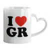 I Love GR, Κούπα καρδιά χερούλι λευκή, κεραμική, 330ml