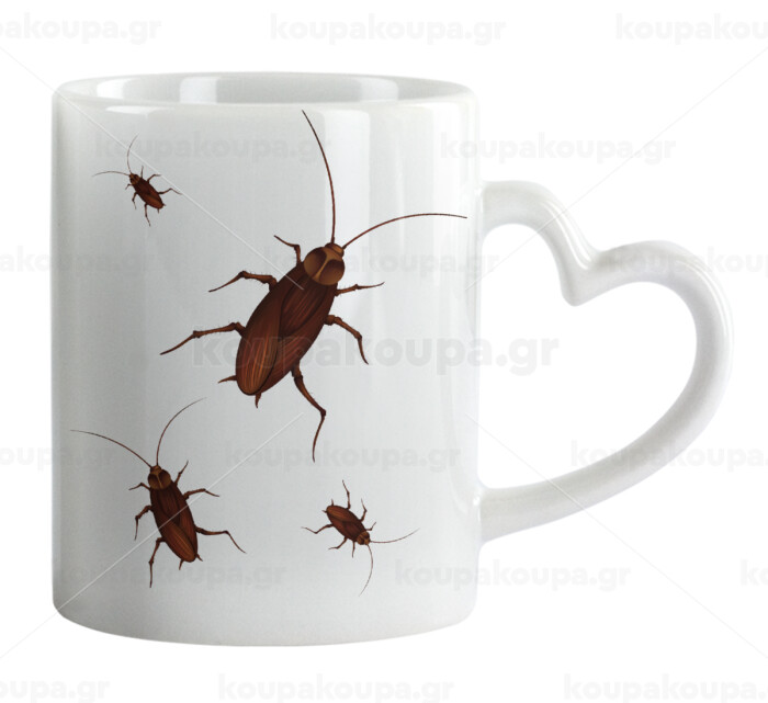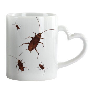 Κατσαρίδα, Κούπα καρδιά χερούλι λευκή, κεραμική, 330ml