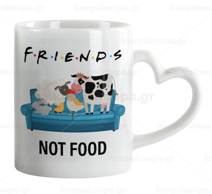 friends, not food, Κούπα καρδιά χερούλι λευκή, κεραμική, 330ml