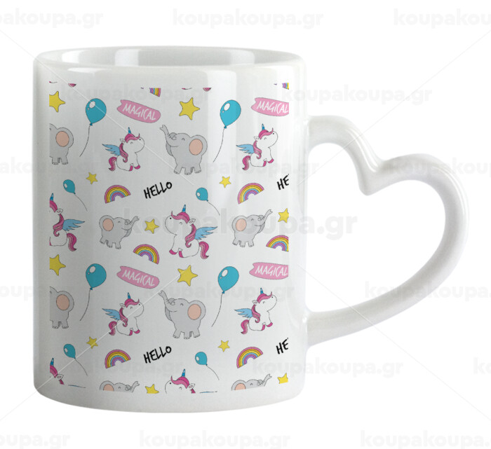Κούπα με χερούλι σε σχήμα καρδιάς γυαλιστερή εξαιρετικής ποιότητας με έντονα χρώματα.  Πλύσιμο σε πλυντήριο πιάτων, κατάλληλη για φούρνο μικροκυμάτων. Χρησιμοποιήστε την για ζεστά και κρύα ροφήματα.