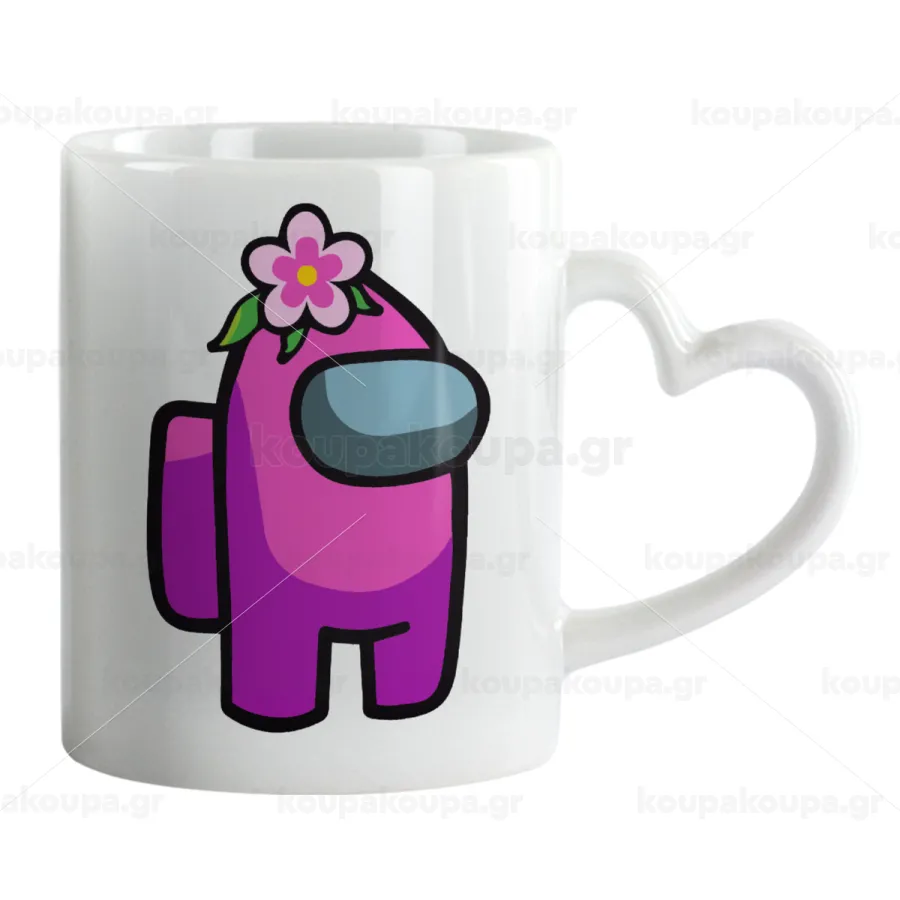Among US girl, Κούπα καρδιά χερούλι λευκή, κεραμική, 330ml