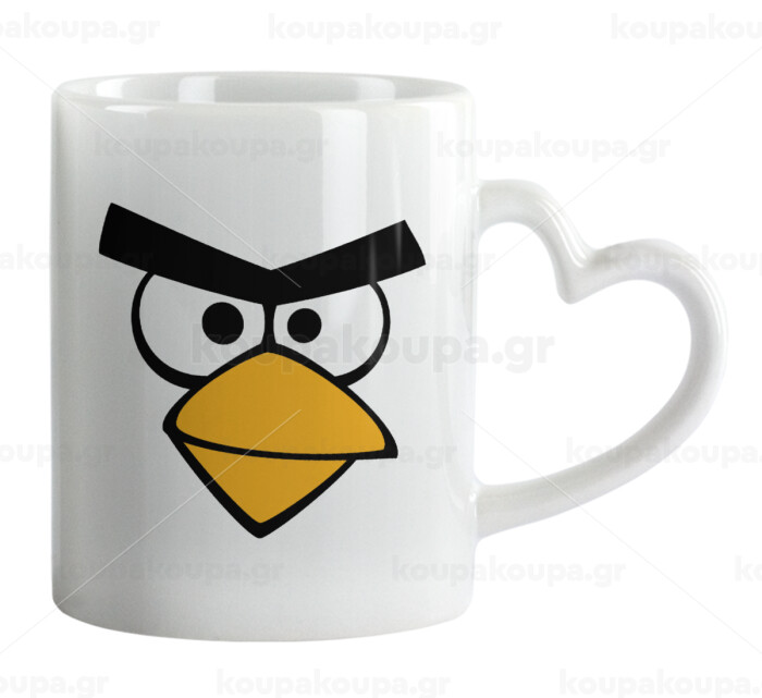 Angry birds eyes, Κούπα καρδιά χερούλι λευκή, κεραμική, 330ml