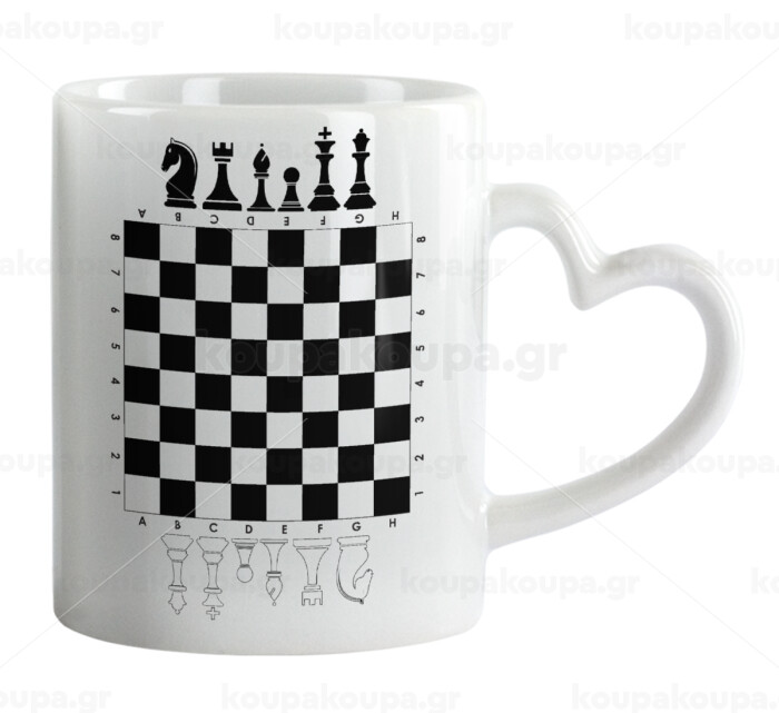 Σκάκι, Κούπα καρδιά χερούλι λευκή, κεραμική, 330ml