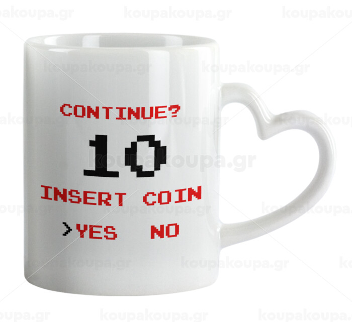 Continue? YES - NO, Κούπα καρδιά χερούλι λευκή, κεραμική, 330ml