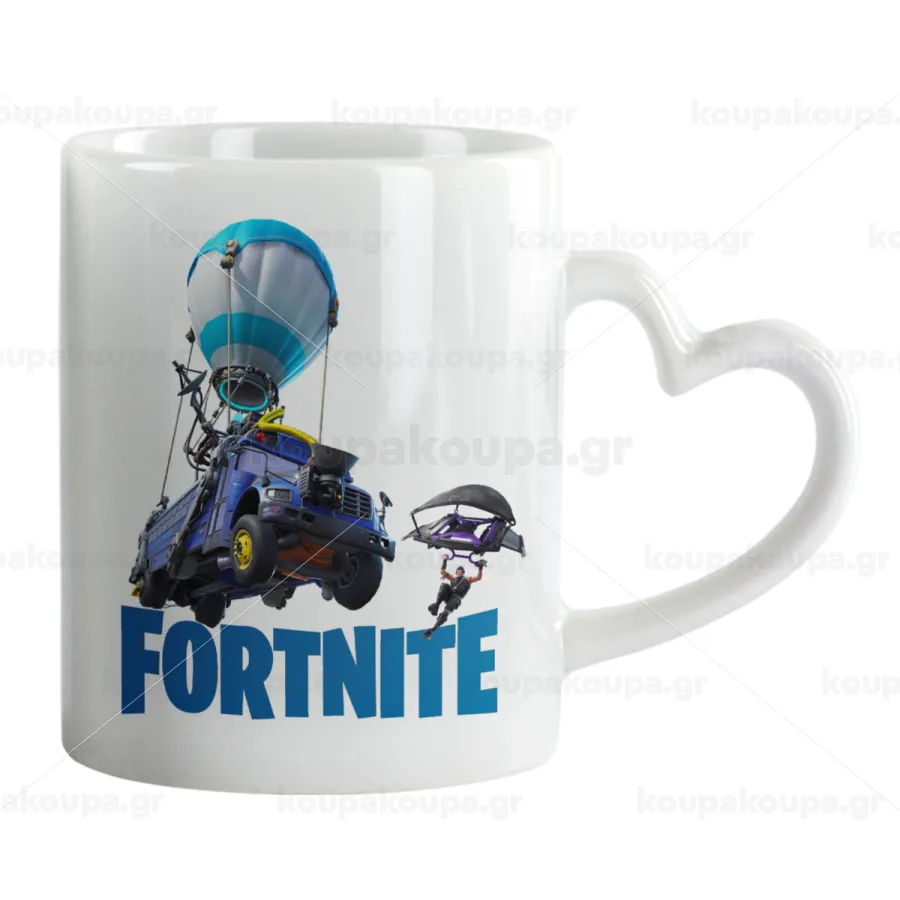 Fortnite Bus, Κούπα καρδιά χερούλι λευκή, κεραμική, 330ml
