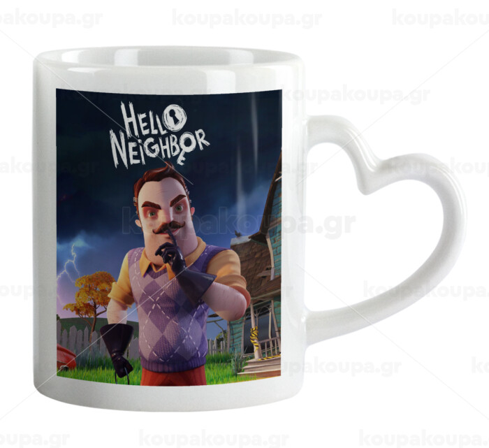 Hello Neighbor, Κούπα καρδιά χερούλι λευκή, κεραμική, 330ml
