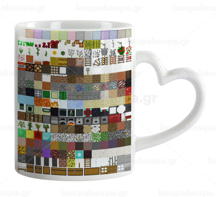 Minecraft blocks, Κούπα καρδιά χερούλι λευκή, κεραμική, 330ml