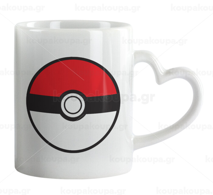 Pokemon ball, Κούπα καρδιά χερούλι λευκή, κεραμική, 330ml
