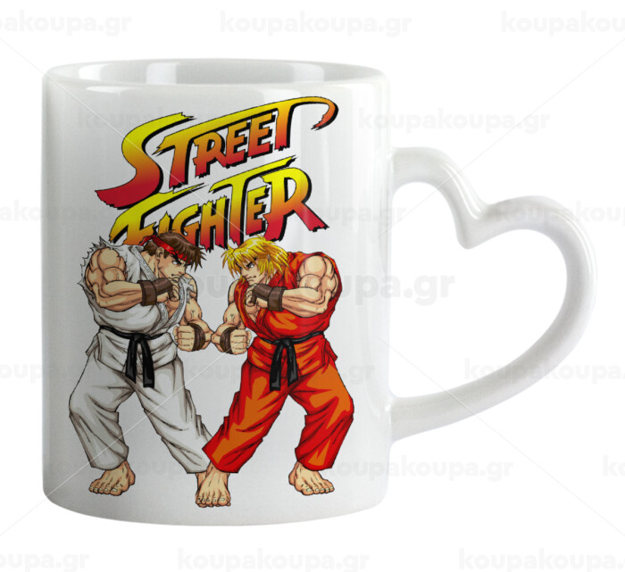 Street fighter, Κούπα καρδιά χερούλι λευκή, κεραμική, 330ml