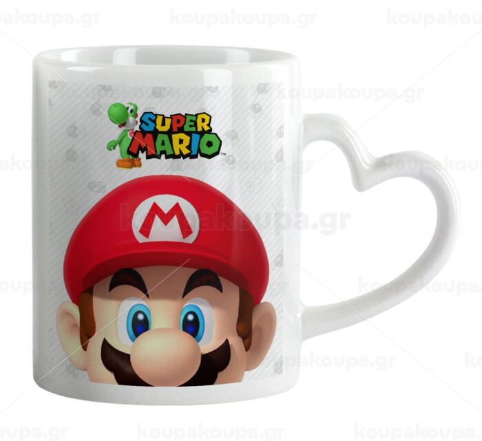 Super mario, Κούπα καρδιά χερούλι λευκή, κεραμική, 330ml