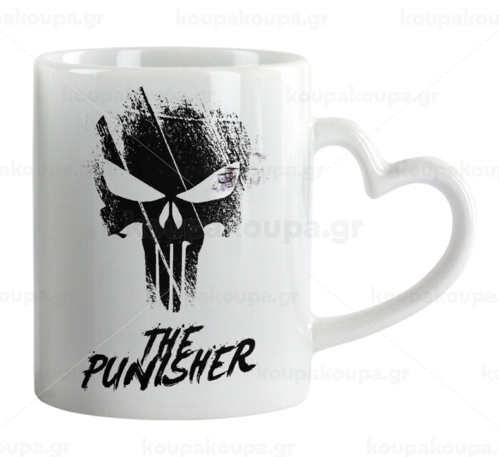 The punisher, Κούπα καρδιά χερούλι λευκή, κεραμική, 330ml