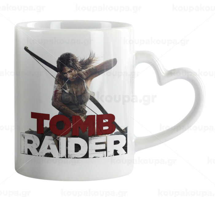 Tomb raider, Κούπα καρδιά χερούλι λευκή, κεραμική, 330ml