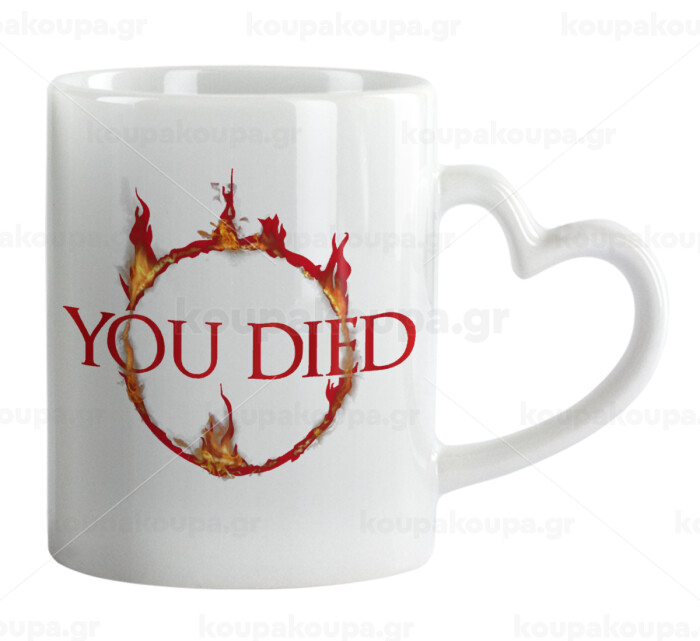 You Died | Dark Souls, Κούπα καρδιά χερούλι λευκή, κεραμική, 330ml