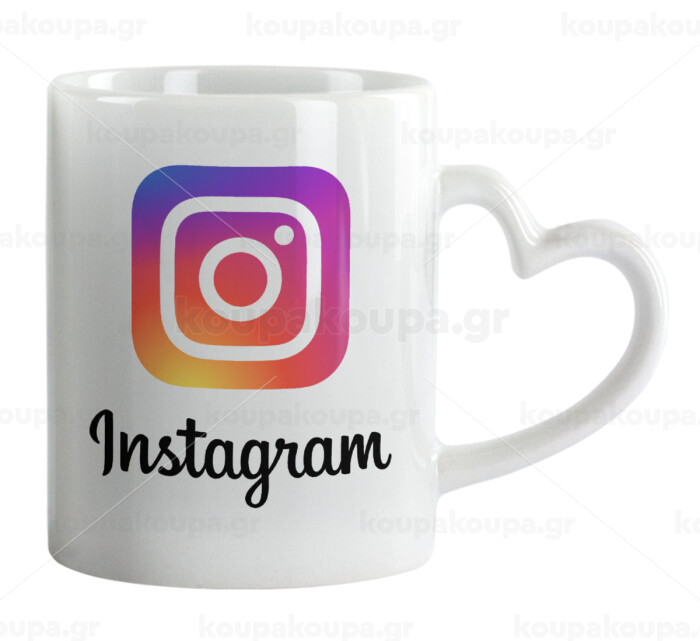 Instagram, Κούπα καρδιά χερούλι λευκή, κεραμική, 330ml