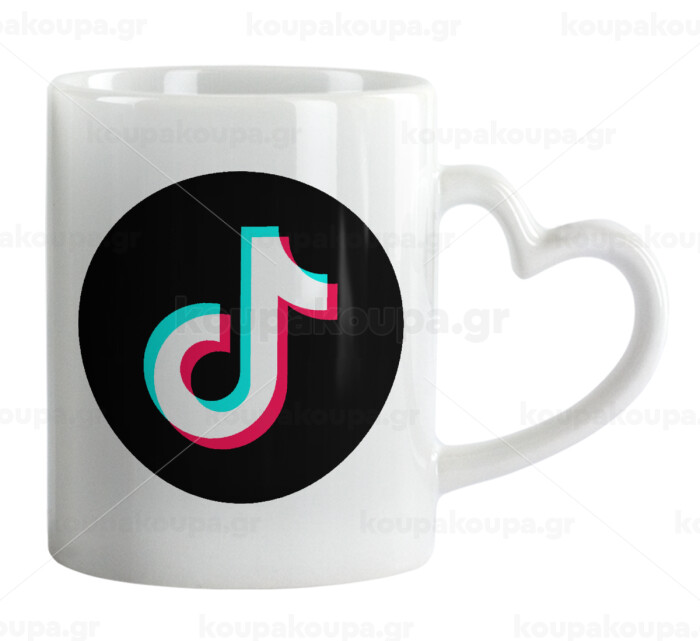 TikTok, Κούπα καρδιά χερούλι λευκή, κεραμική, 330ml