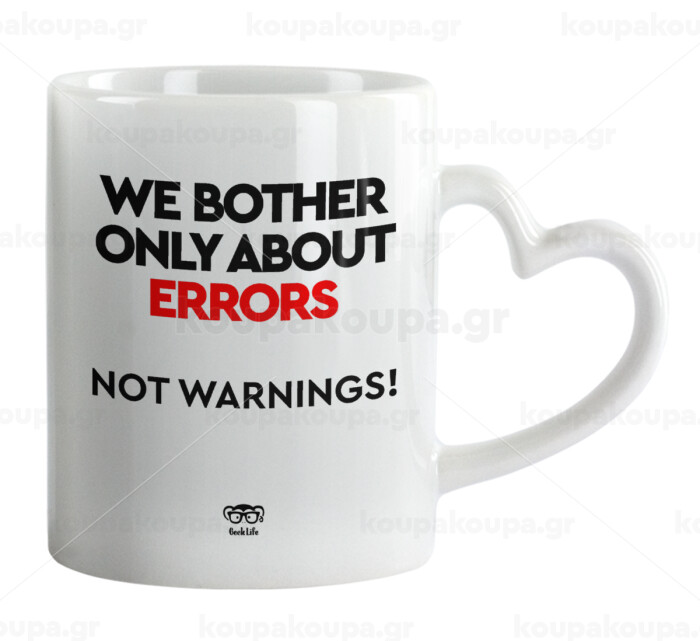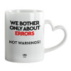 We bother only about errors, not warnings, Κούπα καρδιά χερούλι λευκή, κεραμική, 330ml