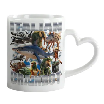 Italian Brainrot, Κούπα καρδιά χερούλι λευκή, κεραμική, 330ml