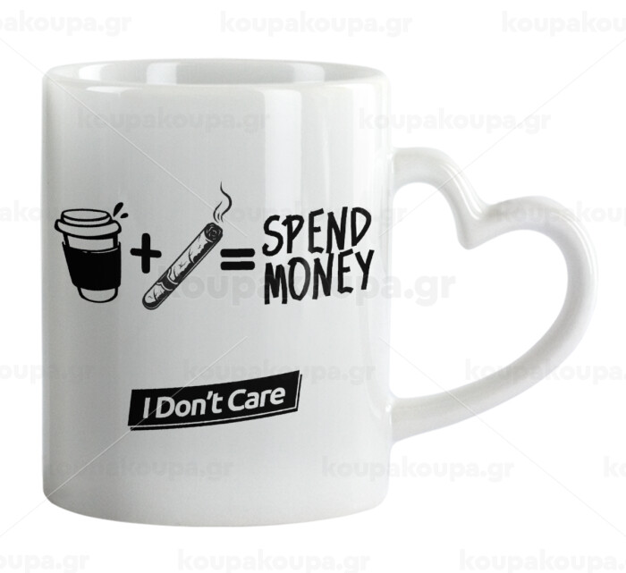 Spend Money, Κούπα καρδιά χερούλι λευκή, κεραμική, 330ml