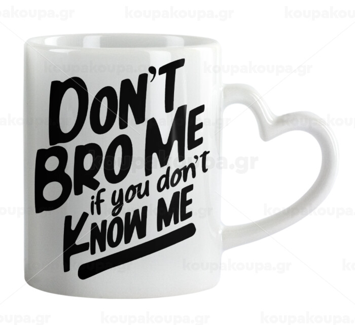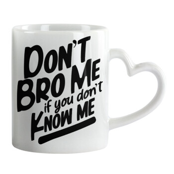 Dont't bro me, if you don't know me., Κούπα καρδιά χερούλι λευκή, κεραμική, 330ml