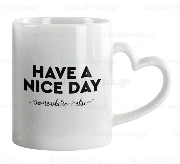 Have a nice day somewhere else, Κούπα καρδιά χερούλι λευκή, κεραμική, 330ml