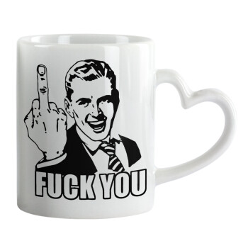 The finger, Κούπα καρδιά χερούλι λευκή, κεραμική, 330ml