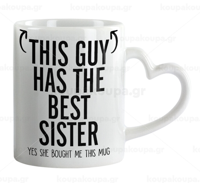This guy has the best Sister, Κούπα καρδιά χερούλι λευκή, κεραμική, 330ml