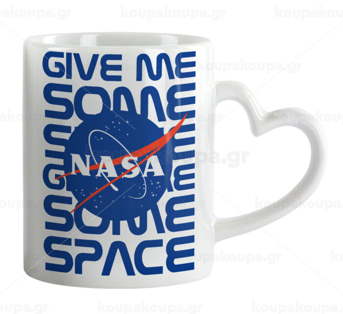NASA give me some space, Κούπα καρδιά χερούλι λευκή, κεραμική, 330ml