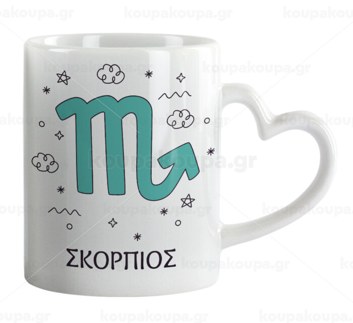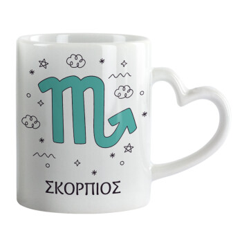 Ζώδια Σκορπιός, Κούπα καρδιά χερούλι λευκή, κεραμική, 330ml